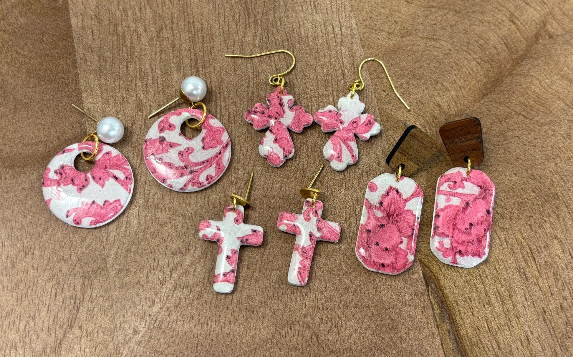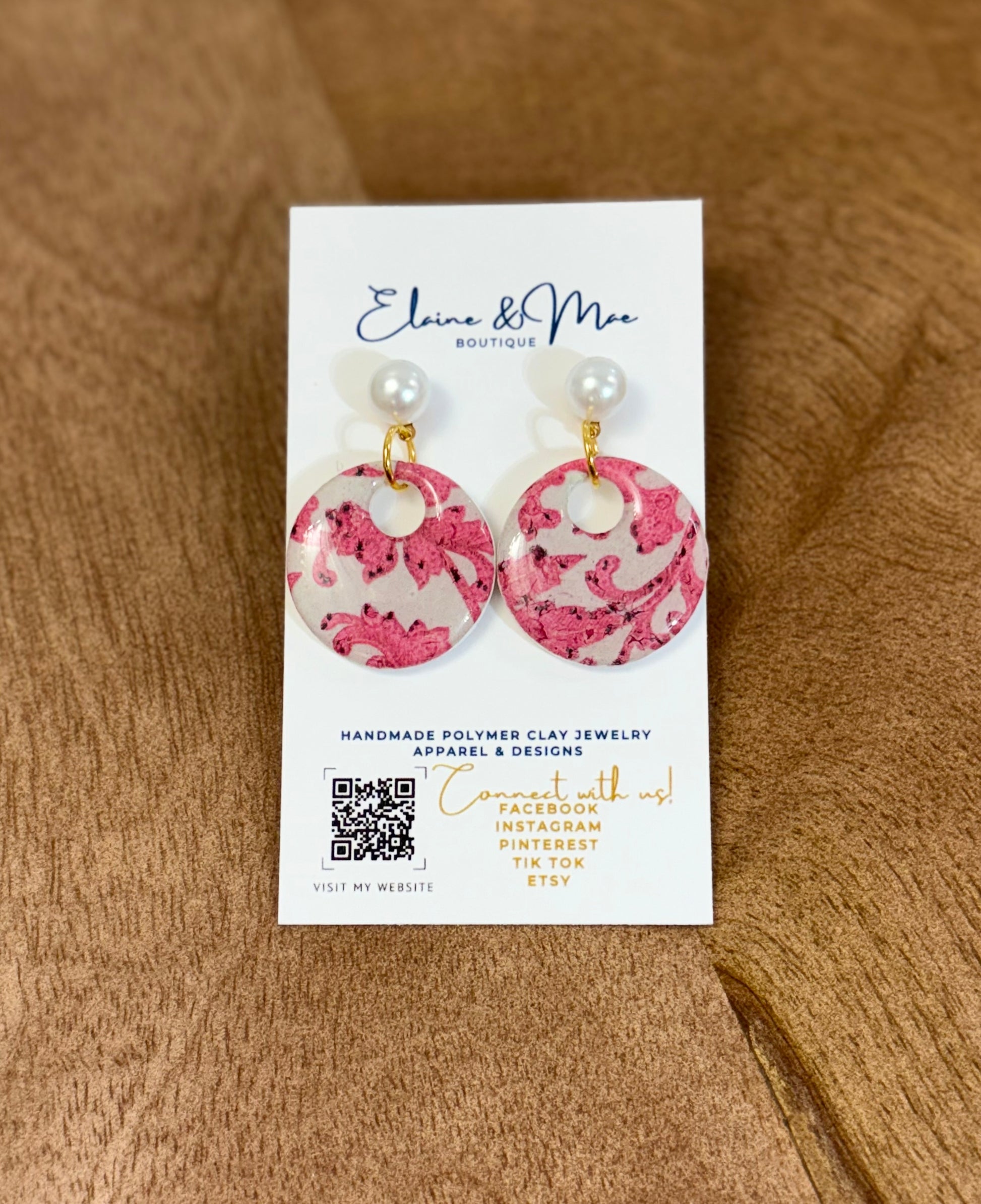 ✨ Our Blushing Vine earrings showcase a bold pink floral print with elegant vine-like details on a soft background. Bright, feminine, and eye-catching — the perfect pop of color to carry your style from fall into the holiday season.