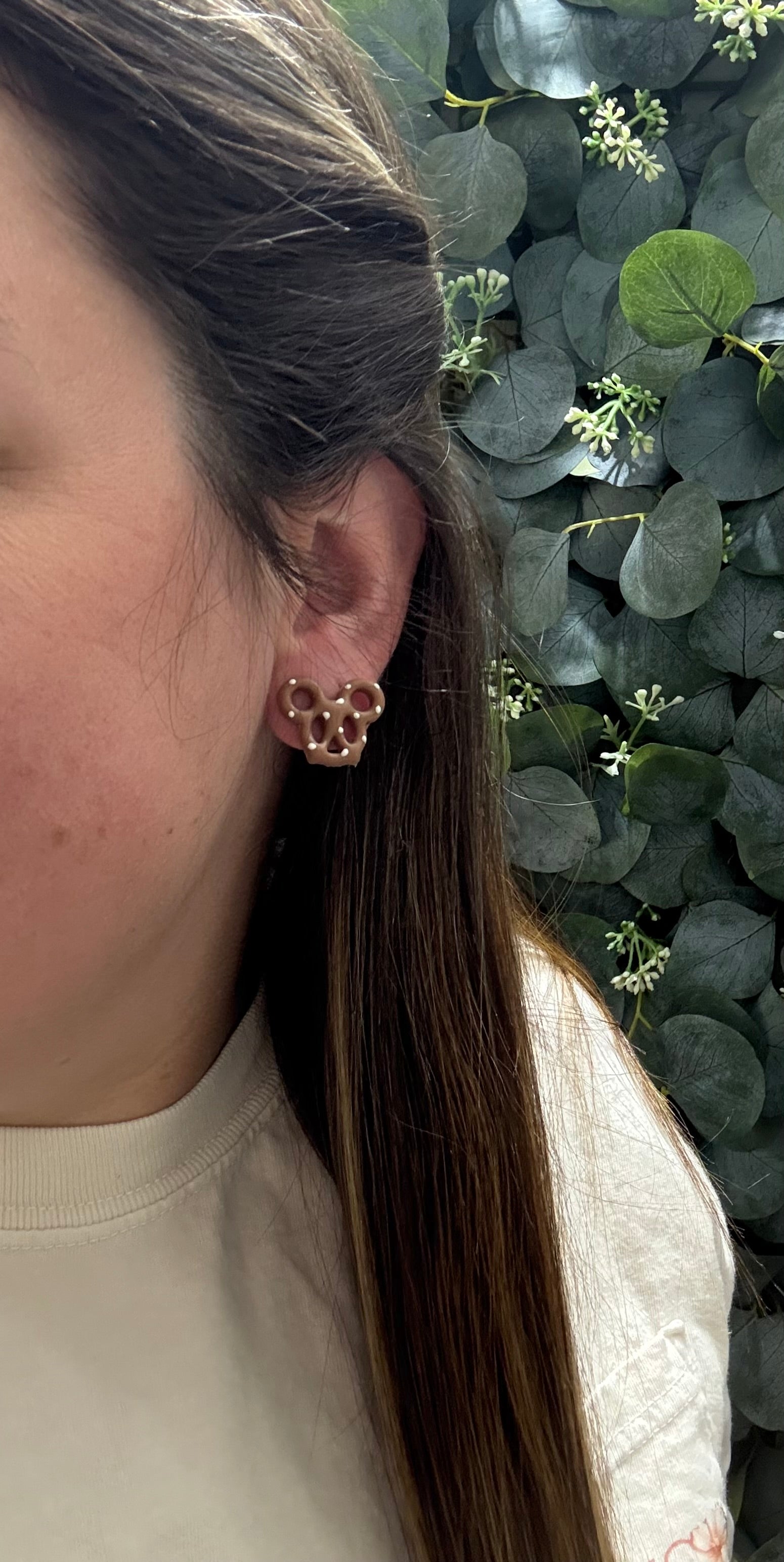 Soft, golden, and sprinkled with salt — these pretzel earrings are a cozy nod to the most iconic snack carts in the park. A little twist of magic for your everyday style.