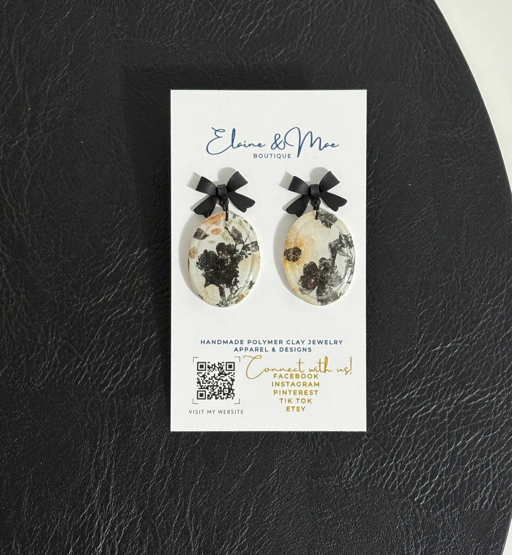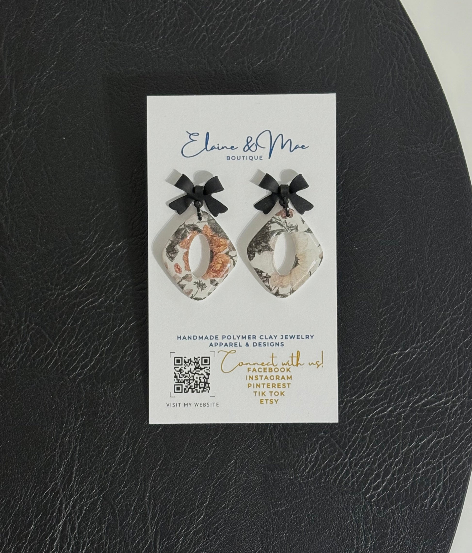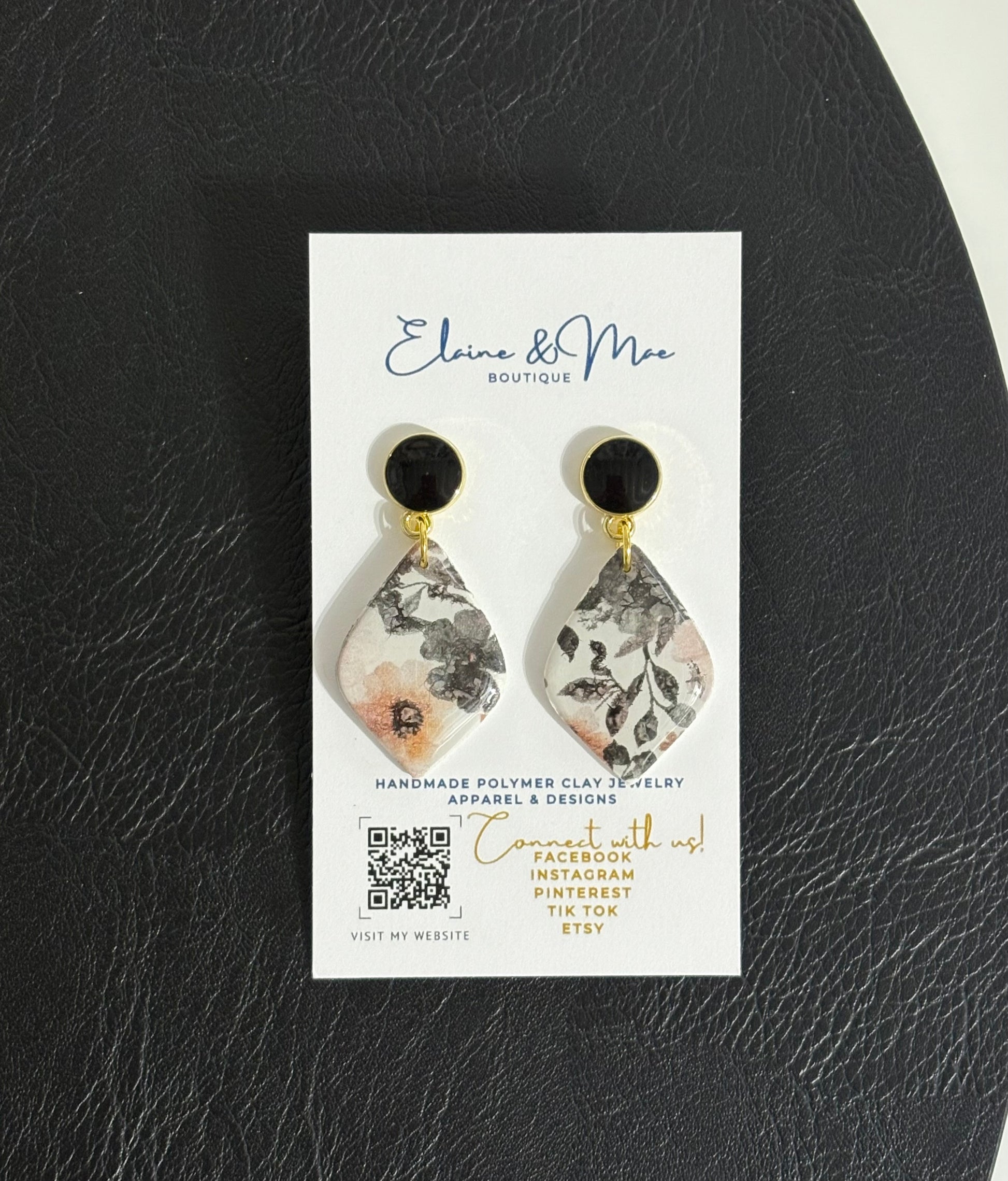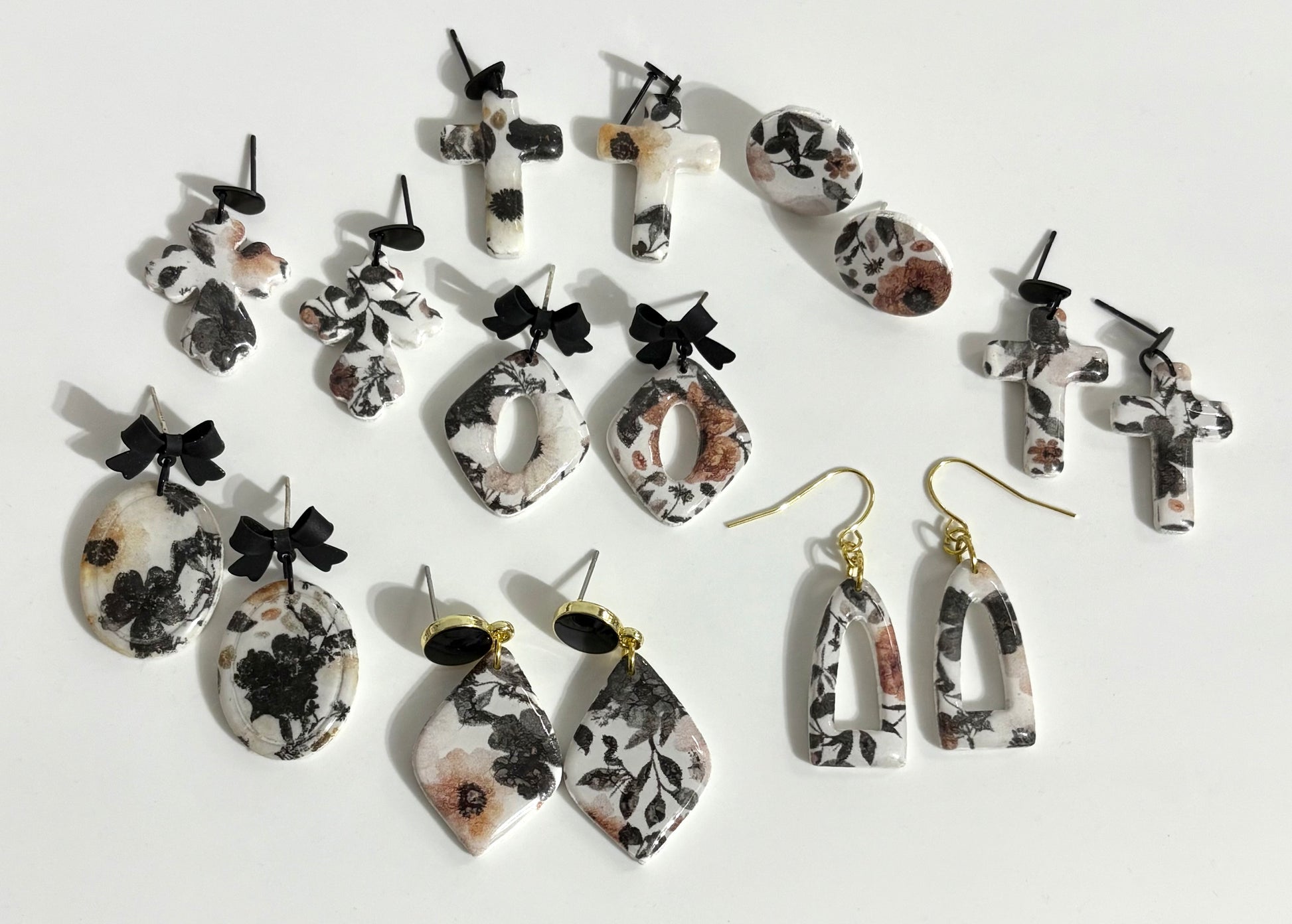 ✨ Our Rustic Noir earrings feature moody black and sepia florals on a soft ivory base, blending vintage elegance with rustic autumn charm. A timeless statement piece for the season.