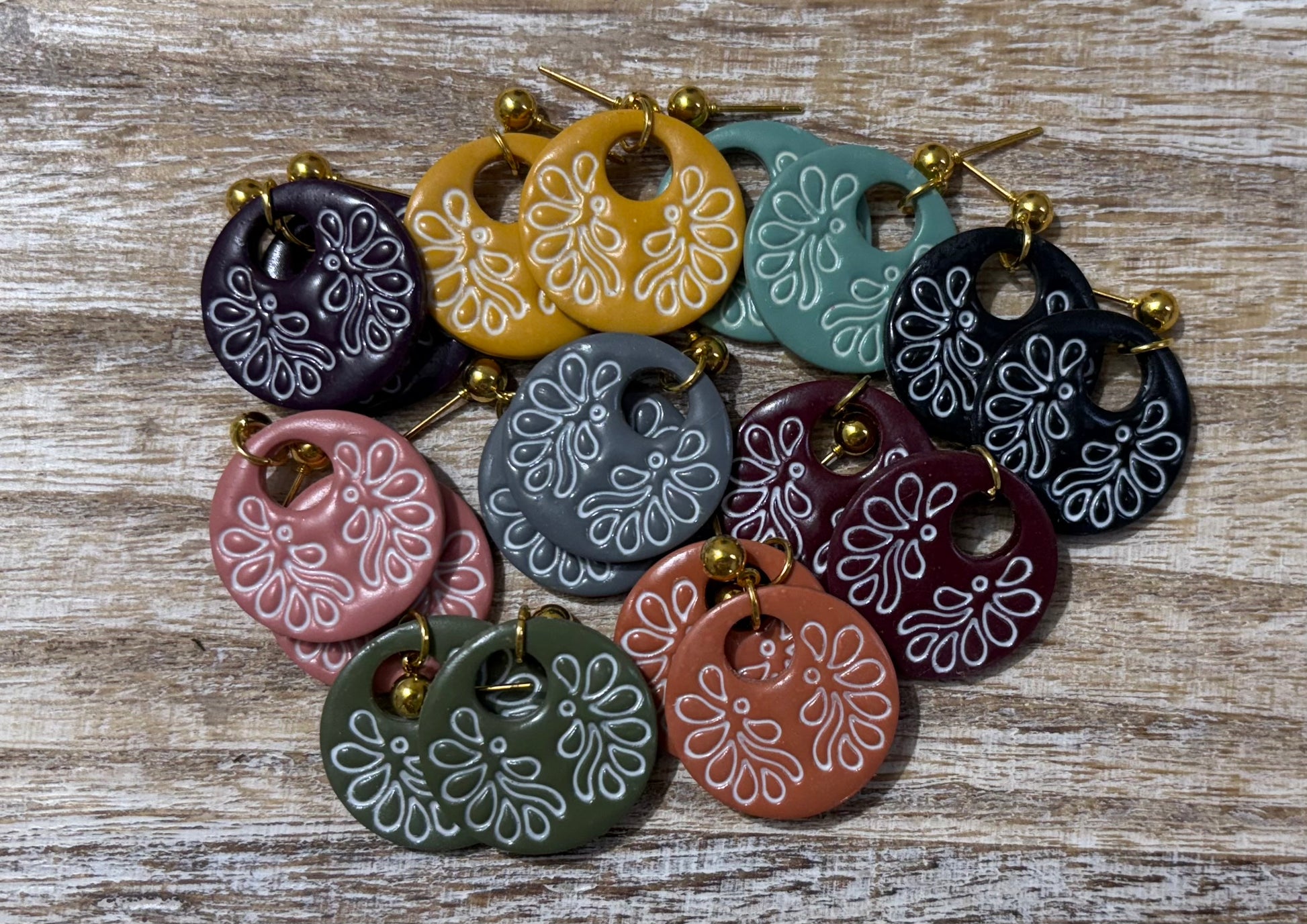 Handmade Earrings using polymer clay. Earrings are lightweight and make for easy wearing.
