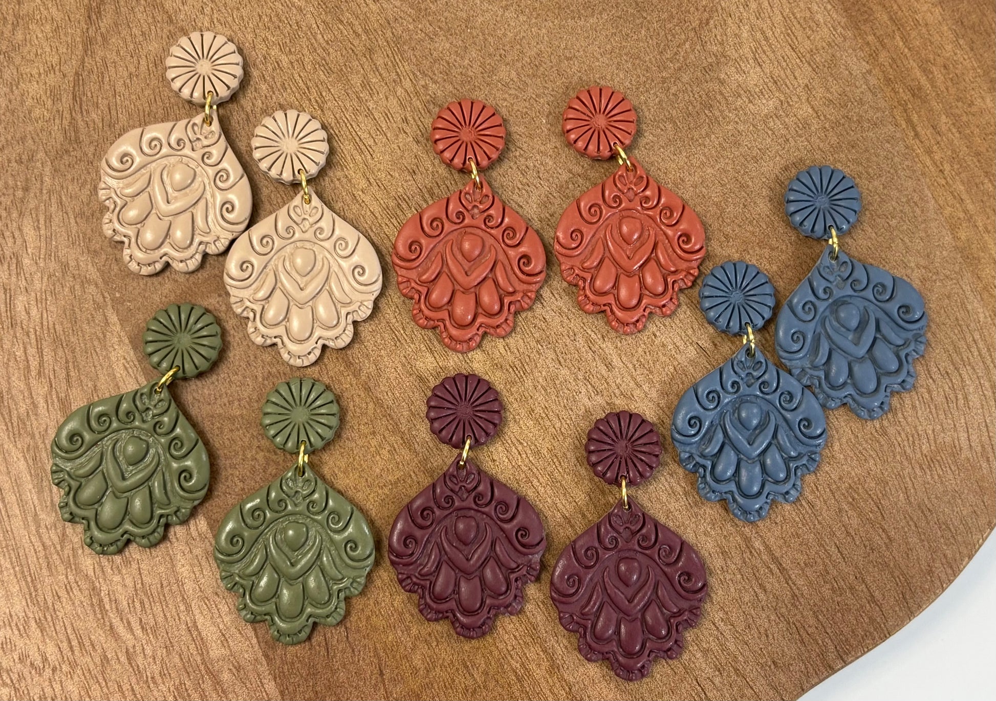 Handmade Earrings using polymer clay. Earrings are lightweight and make for easy wearing.