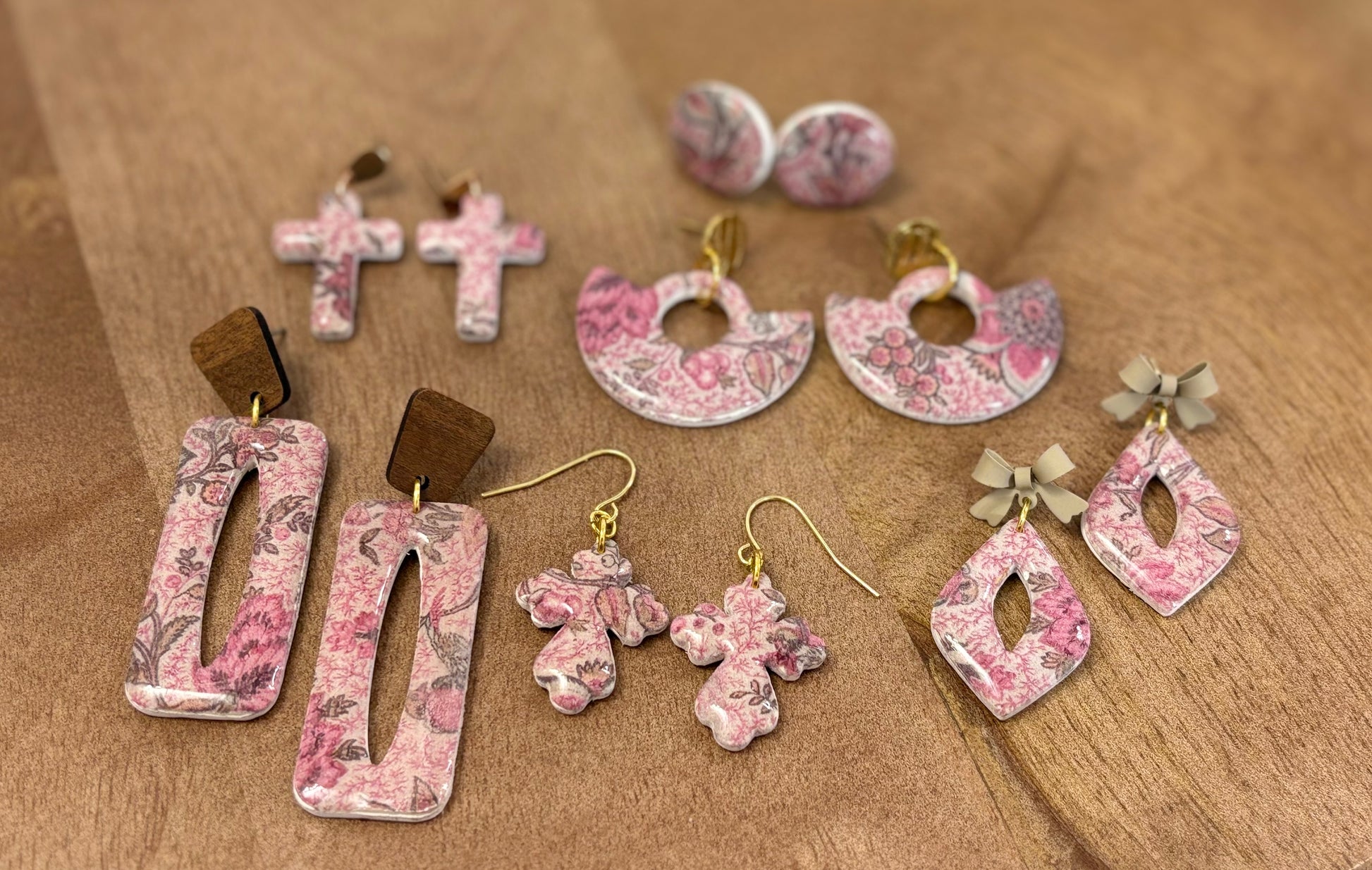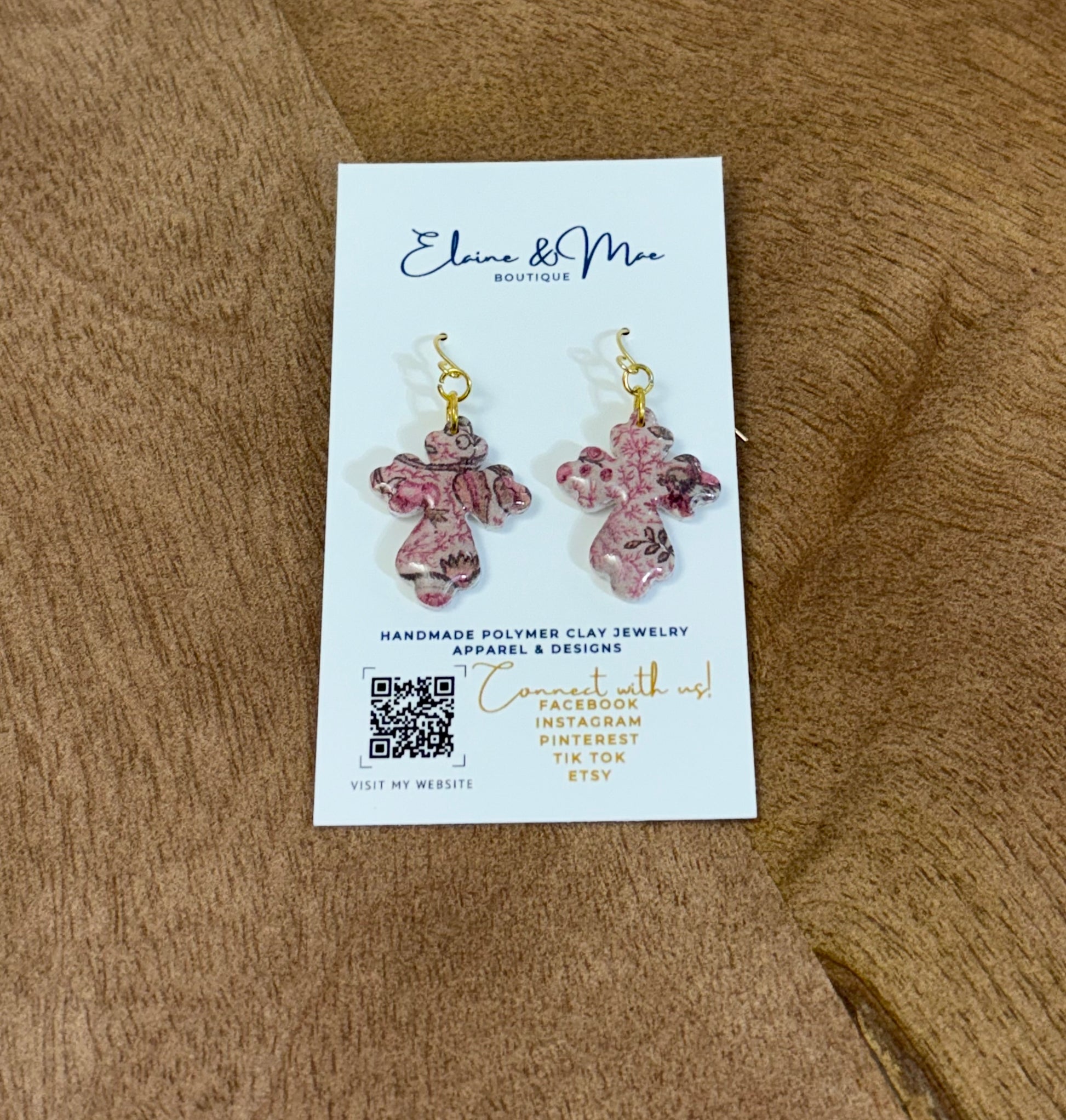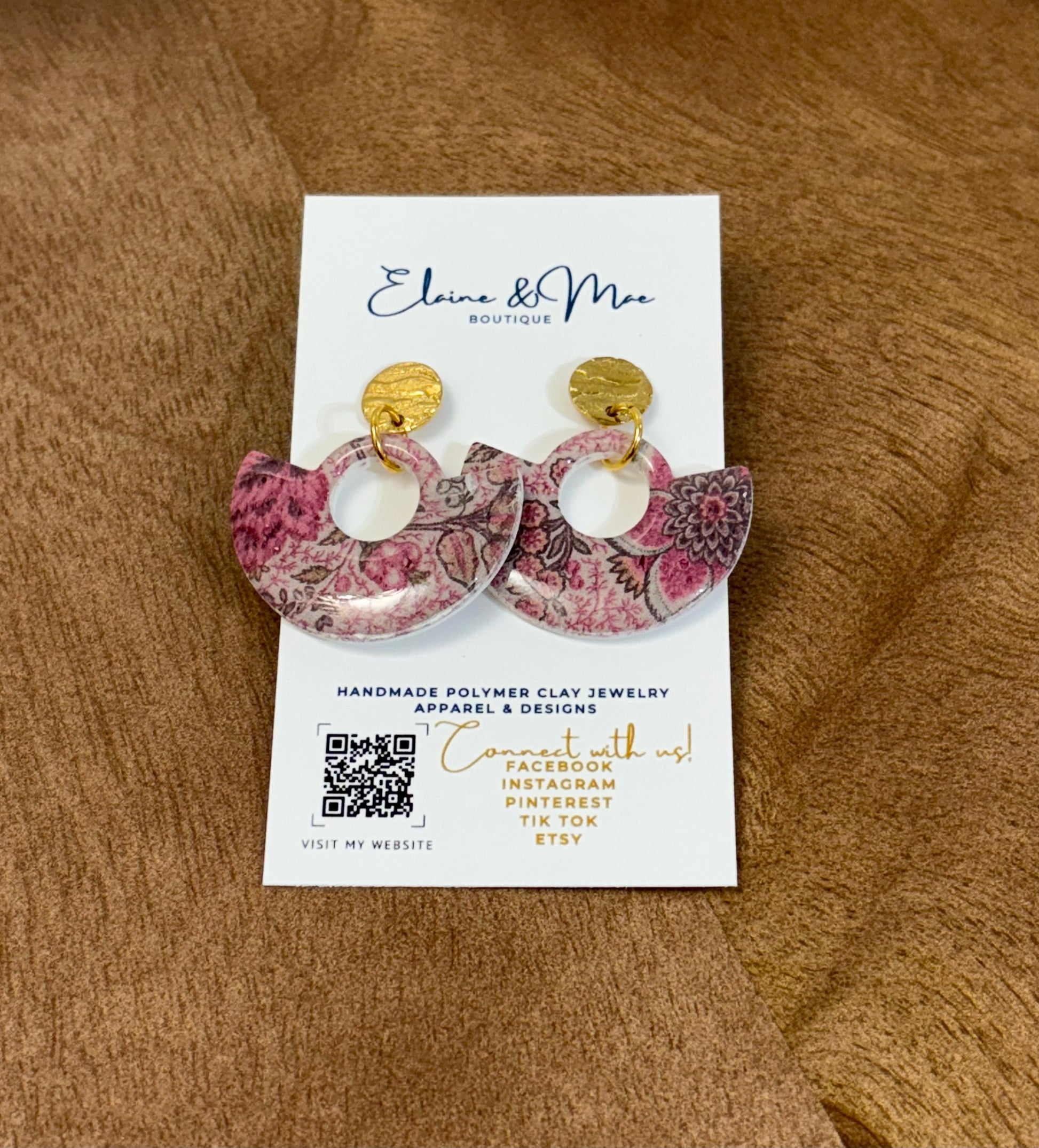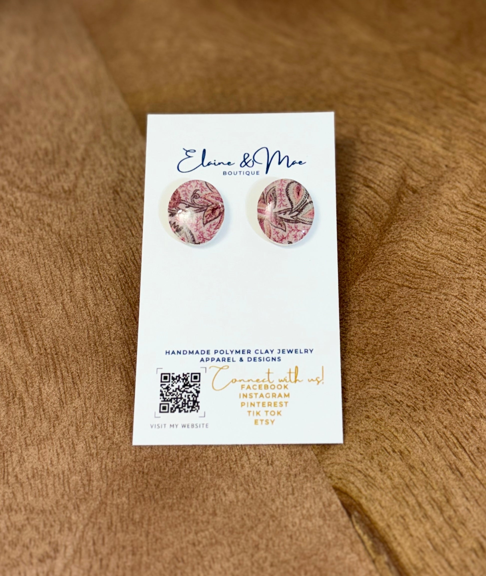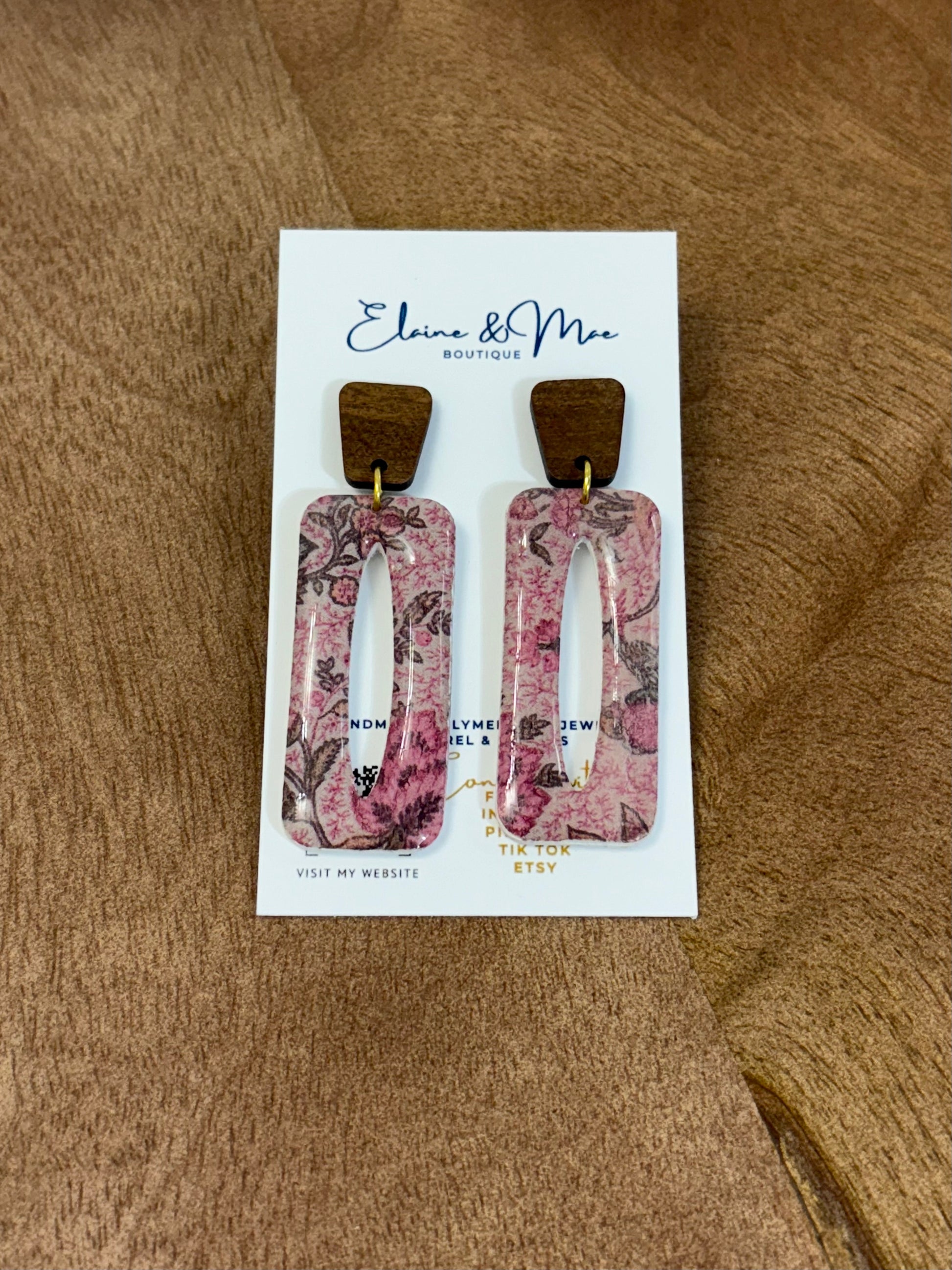 ✨ Our Rustic Rosewood earrings feature a moody floral print in warm blush and deep woodsy tones, blending rustic charm with timeless elegance. A cozy yet elevated touch for your autumn wardrobe.